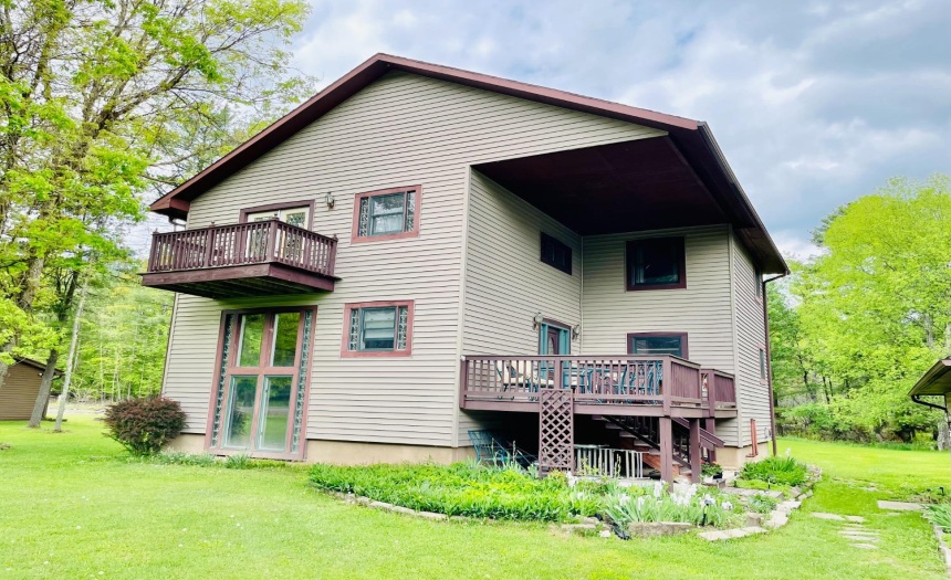 Exterior Features : Balcony,Deck,Patio,Storage/Out-Building,Stream