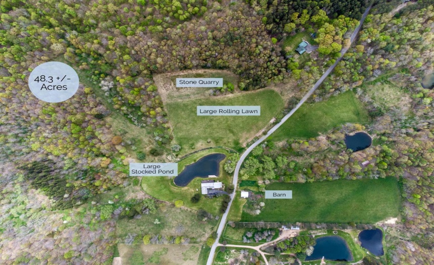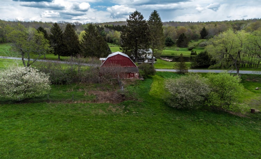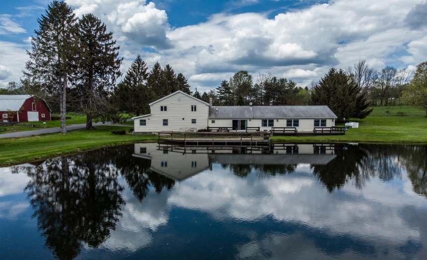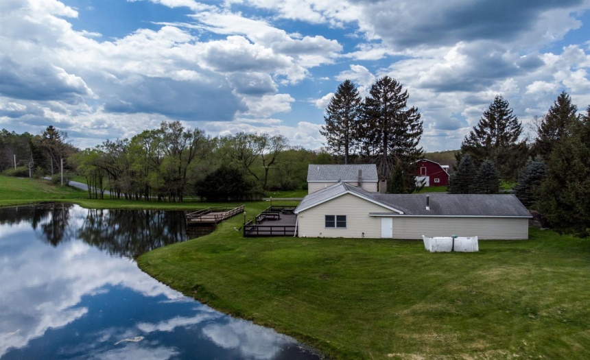 Exterior Features : Barn,Deck,Pond,Storage/Out-Building,Wood Furnace